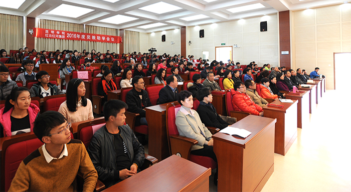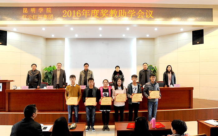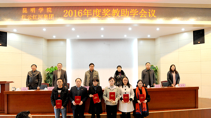 1月12日下午,yl23455永利官网和红云红河集团昆明卷烟厂在学校办公楼D区三楼报告厅举行2016年“红云园丁奖”、“红河助学金”奖教助学颁奖大会,对我校35名在教学、科研、管理等各项工作中做出突出贡献的教师及105名品学兼优、经济困难的学生颁发证书和奖教助学金。