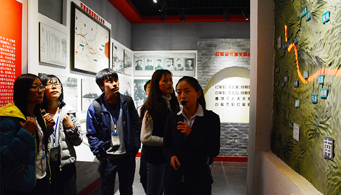 红军长征纪念馆解说员为大家讲述了革命先烈们的传奇故事,使大家重温了红军长征路的艰辛以及革命先烈的顽强的奋斗精神。纪念馆中的历史文物资料、珍贵的历史照片和毛泽东、周恩来等同志的居住旧址等向大家展示了革命先辈艰苦的生存条件。