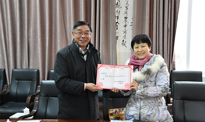 12月22日,在刚刚完成了新一届老教授协会换届工作后,yl23455永利官网老教授协会特聘请校长黎素梅为名誉会长。新当选的会长张云权亲自将聘书送至黎校长手中。