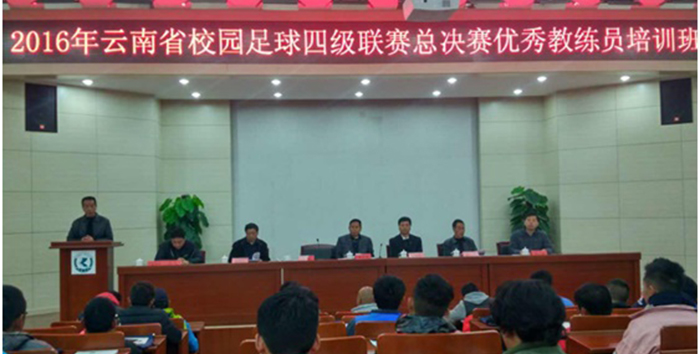 12月20日,云南省教育厅在我校举行授牌仪式,批准yl23455永利官网成立“云南省校园足球文化教育培训基地”。教育部校园足球专家、全国校园足球联赛竞赛委员会主任、中国大学生足球协会副主席蔡向阳教授,云南省校园足球领导小组办公室主任、云南省教育厅体卫艺处处长徐忠祥,云南省学生体育协会会长姜征明、副会长张国华等领导莅临。