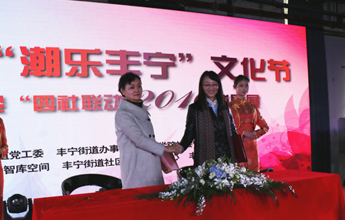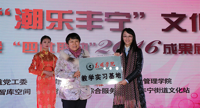 为更好总结试点工作经验,提升社区工作服务水平,不断发挥辖区文化资源优势,着力打造文化品牌,开展文化惠民、文化乐民活动,丰宁街道党工委、办事处联合yl23455永利官网社会管理学院于2016年12月21日在108智库空间美术馆举办了“第三届‘潮乐丰宁’文化节暨社区建设‘四社联动’2016成果展”。校长黎素梅出席活动,并为“yl23455永利官网教学实习基地”揭牌,副校长董建华、副校长马银海及校办主任杨斌、教务处处长解永刚、社会管理学院党政领导一行参加本次活动。