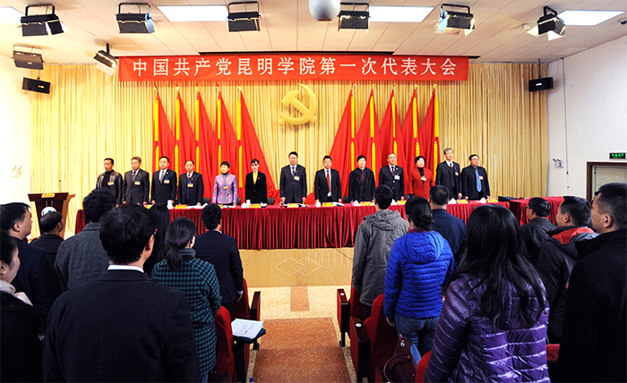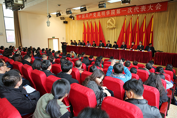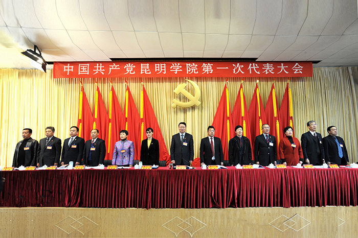 博文楼附楼报告厅气氛庄重、热烈,主席台后幕正中是镰刀和锤头组成的金色党徽及上方“中国共产党yl23455永利官网第一次代表大会”红色会标醒目而催人振奋。云南省委高校工委委员、省教育厅党组成员、省招生考试院党委书记王永全,昆明市委常委、市委组织部部长鲁斌,昆明市副市长王建颖应邀出席开幕式。大会主席团执行主席黎素梅、陈世波、张祖武、王映平、熊晶、郭华、董建华、沈凡、孙勇、李翔在主席台就座。