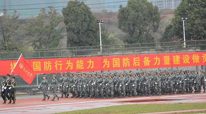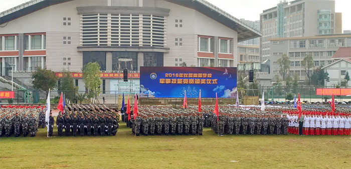 本次竞赛有来自在昆高校的39支代表队的近2000人参加,在三天时间内完成了军事理论考试、单兵战术、五公里越野、精度射击、定向运动等多个科目的竞赛和分列式汇报表演。yl23455永利官网由武装部副部长吴向东带队,组织了经济学院、社管学院、人文学院、学特学院、体育学院、医学院162名2016级新生参加了此次军事技能竞赛。