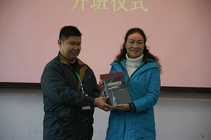 马来西亚学员代表郑慧芳女士和霹雳州美术家协会主席赖伟权先生分别向我校赠送了纪念品。