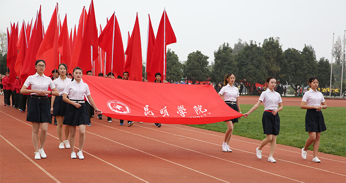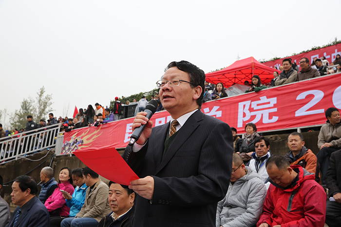 校长黎素梅为运动会开幕式致辞。她代表学校党委行政向出席本次运动会开幕式的领导、来宾表示热烈欢迎,向筹备运动会的全体工作人员和全体志愿者表示衷心的感谢,并回顾了学校一年来在体育运动方面取得的成绩。黎校长说,一年来我校成功承办了多项全省体育运动赛事,取得了优异的成绩,得到了上级主管部门的充分肯定和社会各届的广泛赞誉。在体育学院和工会俱乐部的共同努力下,在广大教职工和同学们的积极参与下,我校的游泳、篮球、足球、瑜伽、羽毛球、乒乓球、网球、竞走等群众性体育运动蓬勃开展,形成了全民健身的浓厚氛围。这次运动会是全体昆院人的一次运动盛会,是各位运动员展示自我的舞台,是全体师生员工共享运动的快乐节日。体育运动不仅能够强身健体,陶冶情操,培养团队精神,锻炼意志,铸就品格,还能从中获得健康体格和愉悦心情。无论是争金夺银的荣耀,还是重在参与的精神,我们付出的每一滴汗水都将成为快乐的源泉。希望全体运动员发扬“友谊第一、比赛第二”的精神,发挥体育竞技水平,弘扬体育道德风尚,尊重对手,尊重裁判,奋力拼搏,赛出水平,赛出风格,希望各位裁判员认真履职,公正裁决。最后,黎校长预祝参赛选手们取得好成绩,预祝运动会圆满成功,祝大家健康快乐。