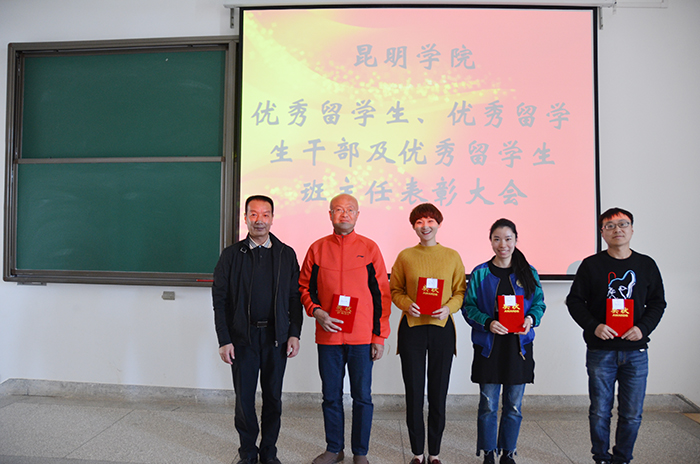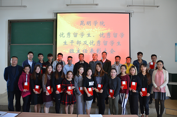 11月17日,我校召开优秀留学生、优秀留学生干部及优秀留学生班主任表彰大会,对在2016年度中品学兼优的艾维等20名优秀留学生、乐于助人的宋赛等14名优秀留学生干部进行表彰和奖励。同时,对在留学生管理工作中爱岗敬业、无私奉献的张小彬、杨溪、张顺元和周立君四名班主任进行表彰和奖励。副校长李翔、城乡建设与工程管理学院院长莫南明、信息技术学院书记陶军、国际交流合作处副处长陈静、人文学院副书记吴彦勤、经济学院副书记李雄、医学院何江波博士及国际交流合作处全体工作人员出席了表彰大会。