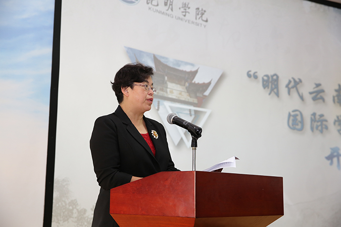 熊晶副校长在开幕上致辞。向参加本次研讨会的专家学者和各位嘉宾表示热烈的欢迎,向中国明史学会对yl23455永利官网的信任和支持表示衷心的感谢。她指出,本次研讨将围绕明代南方丝绸之路的恢复与拓展、明代云南土司与边疆开发等问题展开讨论,为云南省主动服务和融入“一带一路”,建设面向南亚东南亚辐射中心的发展战略提供了历史借鉴和参考,为yl23455永利官网能够更好的服务地方经济社会,充分发挥高校智库的参谋作用提供了交流学习的机会,对我校人文、历史学科建设有着重要的推动作用和指导意义。本次会议的举行,对推动我国明史研究,继承和发扬和平合作、开放包容、互学互鉴、互利共赢的丝路精神有着十分积极的作用。希望通过这次学术研讨会,广交朋友,广结良缘,与各位学者并通过他们与其所在单位,建立持续的良好关系。