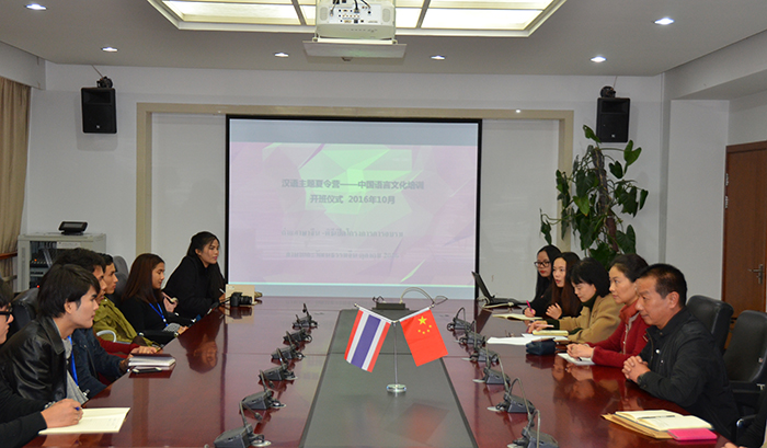 10月31日,泰国吞武里皇家大学12名学生到我校开展主题为“中国语言文化学习交流”的活动,两校师生为此举行了隆重的开班仪式,此次学习交流活动为期三周,相关课程及活动由我校外国语学院组织实施。