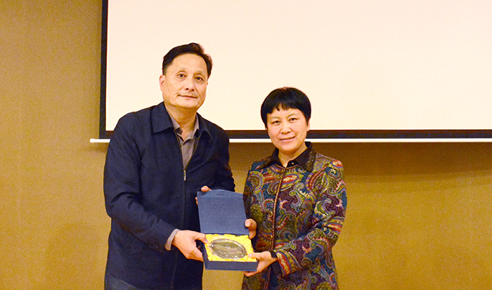 会上,南京大学校长助理李成向黎素梅校长赠送《南大读本》社会自然科学(卷)和人文学科(卷)读本等纪念品。