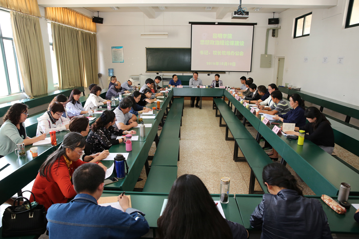 10月10日,学校在马克思主义学院召开思想政治理论课建设书记、校长现场办公会,学校党委书记陈世波、校长黎素梅、副校长郭华及党委办公室、校长办公室、党委宣传部、人事处、教务处、科研处、计财处、学生处、团委等相关职能部门领导亲临现场调研指导工作,针对马克思主义学院建设发展中存在的困难和问题,以及如何进一步加强和改进我校思想政治理论课建设,提出了对策、思路、希望和要求。会议由副校长郭华主持。