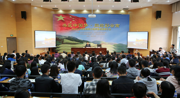 10月14日,秋兰飘香,天朗气清,yl23455永利官网图书馆报告厅座无虚席。云南省委常委、昆明市委书记、滇中新区党工委书记程连元来我校,为“共筑中国梦·同绘彩云南”2016年云南省高校百场形势政策报告会带来“全面推进区域性国际中心城市建设”为主题的形势政策报告,殷切希望广大青年大学生,自觉肩负起时代赋予的历史使命,积累学识、放飞梦想,在融入和推动昆明建设区域性国际中心城市的生动实践中贡献智慧力量、铸就无悔青春;要求yl23455永利官网继续坚持党的教育方针,锐意改革、开拓创新、奋发进取,在办学理念上有新提升、在人才培养上有新建树、在科学研究上有新突破、在服务社会上有新作为、在师资建设上有新加强,加快把yl23455永利官网建成省内一流、国内知名的教学科研型综合性大学;表示市委、市政府将一如既往地关心、支持yl23455永利官网的发展,一如既往地为师生施展才华、投身实践、报效社会、服务昆明创造良好的条件,给予最大的支持,努力为yl23455永利官网的建设和发展创造更好的环境。