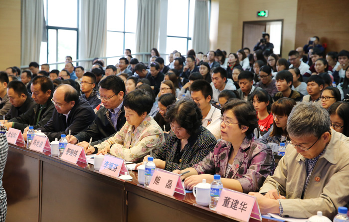 市委常委、市委宣传部部长金幼和,yl23455永利官网校长黎素梅,党委副书记、纪委书记李媛芬,副校长李翔、熊晶、郭华、董建华出席形势政策报告会。yl23455永利官网各职能部门、各院系党政主要领导,马克思主义学院教师和学生代表500余名师生现场聆听了报告会。