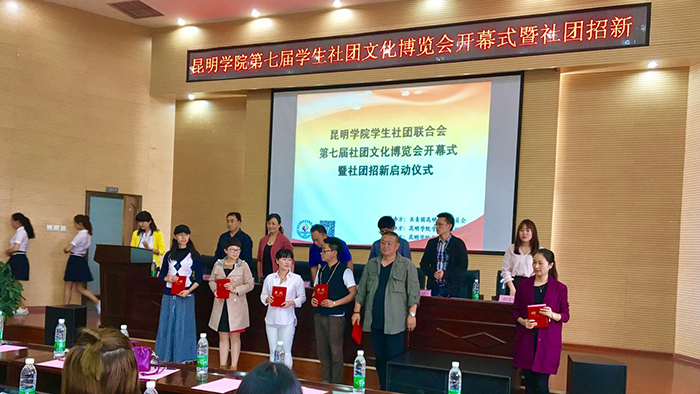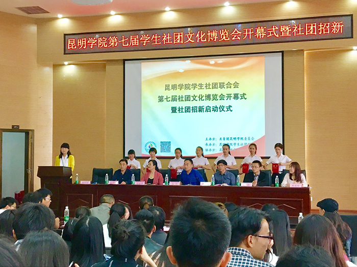 10月12日,由学校团委主办,学生社团联合会承办,yl23455永利官网各学生社团协办的“yl23455永利官网第七届学生社团文化博览会开幕式暨社团招新启动仪式”在图书馆报告厅隆重举行。yl23455永利官网副校长郭华,党委宣传部部长李剀,团委书记魏妮娅,学生处处长晁丽华,团委副书记聂铭,教务处教材教室科副科长段建平,团委全体干部以及各院系团总支书记,部分社团指导老师,各高校代表,明星社团及优秀社团代表共200余人参加了本次活动。开幕式由团委书记魏妮娅主持。