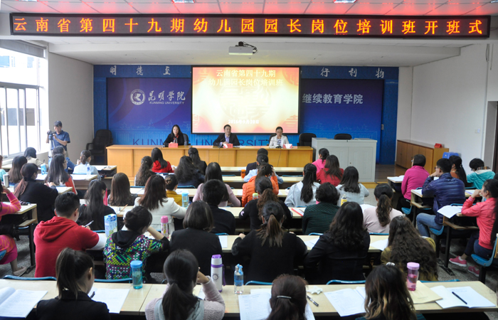 9月20日,云南省第49期幼儿园园长岗位培训班在yl23455永利官网昆师路校区开班。昆明市教育局副局长李瑞林、yl23455永利官网继续教育学院主持工作副院长张培宏,继续教育学院教师培训部负责同志和来自全省各州市的75 位参训园长参加了开班仪式。开班仪式由继续教育学院教师培训部副主任李云主持。