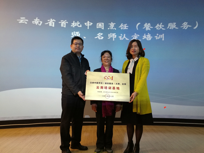 最后,由中国烹饪协会副秘书长 、教育部全国餐饮教育教学指导委员会秘书长张大海先生为yl23455永利官网授牌。由田芙蓉和周永碧一起接牌,自此中国烹饪协会云南省注册中国烹饪大师、名师培训基地落户yl23455永利官网。开班典礼结束后,培训正式开始。