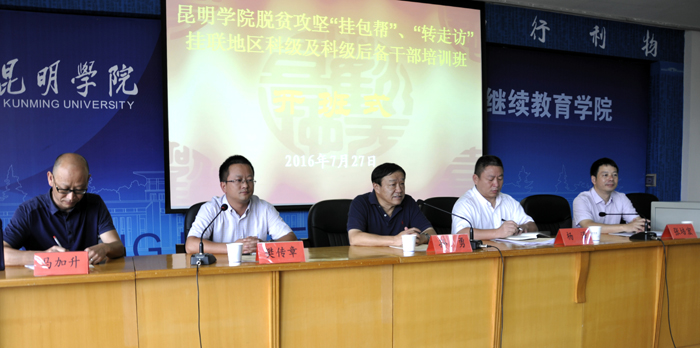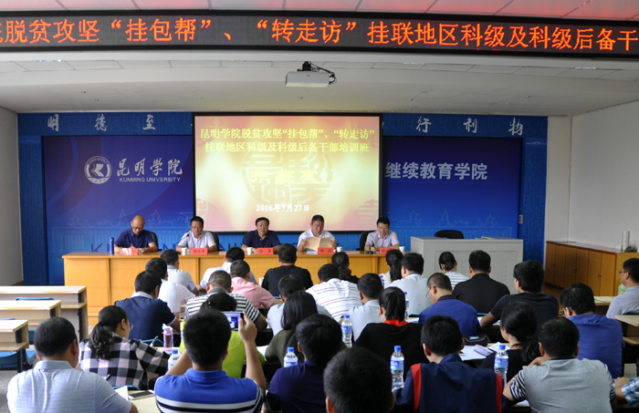 7月27日上午,yl23455永利官网脱贫攻坚“挂包帮”“转走访”挂联地区科级及科级后备干部培训班在昆师路校区继续教育学院开班。这是yl23455永利官网专门为脱贫攻坚挂联地区举办的青年干部培训班,33名学员分别来自红河县和东川区。yl23455永利官网党委委员、副书记孙勇,中共红河县委常委、组织部部长杨泽,yl23455永利官网党委组织部副部长樊传章,继续教育学院主持工作副院长张培宏,对外合作与扶贫办公室副主任马加升等领导参加开班式,开班式由樊传章主持。