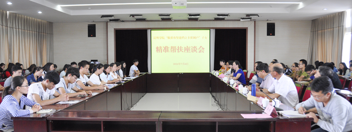 7月4日,学校在办公楼502室召开了2016年精准帮扶学生座谈会。校党委副书记孙勇、副校长郭华出席会议,校团委、宣传部、学生处、扶贫办、招就处负责人、相关院系代表以及全体受帮扶学生参加了本次座谈会。会议由学生处处长晁丽华主持。
