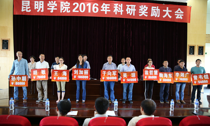 副校长李翔宣读了《yl23455永利官网关于对2015年科研成果获奖教师进行奖励的决定》和《yl23455永利官网关于对2015年大学生优秀科研项目进行奖励的决定》。对2015年科研工作中取得优异成绩的于向军等202名教师、2名外聘科研人员和王顺有等11名学生进行表彰奖励。