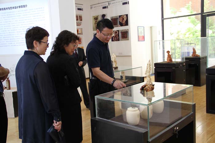 开幕式后,陈世波及我校其他领导陪同陶晴视察了yl23455永利官网展馆,yl23455永利官网美艺学院师生的系列创意作品,地方文化特色鲜明、视觉效果突出、实用性强,体现出教学科研与市场需求相结合的特点,受到陶晴和在场专家学者的充分肯定。