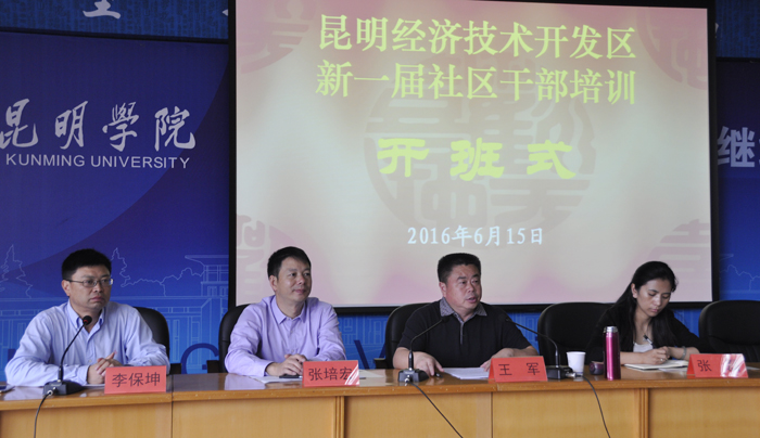6月15日上午,昆明经济技术开发区新一届社区干部培训班在yl23455永利官网昆师路校区开班,昆明经济技术开发区党工委组织部部长王军、民政局副局长张磊、yl23455永利官网继续教育学院主持工作副院长张培宏出席开班式,开班式由继续教育学院教师培训部李保坤主任主持。