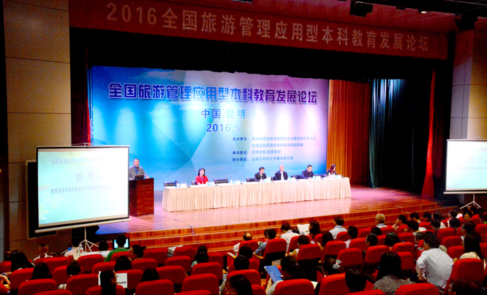 5月28日,由教育部高校旅游管理类专业教学指导委员会、全国高校应用型本科旅游院校联盟主办、我校旅游学院承办的“全国旅游管理应用型本科教育发展论坛”在昆明举行。教育部旅游管理类专业教学指导委员会主任田里,委员会副主任马勇、高峻,我校校长何华、校办主任杨斌、旅游学院院长田芙蓉以及全国70多所院校200余名高校旅游院校院长、学科负责人参加论坛。