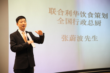 联合利华饮食策划全国行政总厨张蔚波介绍了联合利华集团的企业概况,伴随酷炫的PPT场景,幽默描述了烹饪专业的发展前景,引起了现场学生的阵阵欢呼和掌声。