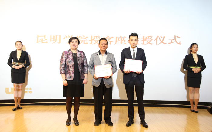 熊晶为昆明饭店国家级工作室首席专家鄢赪先生、百事特酒店中国烹饪大师罗荣先生颁发了yl23455永利官网客座教授荣誉证书,此举进一步壮大我校烹饪师资队伍、提升了我校烹饪师资队伍实力。
