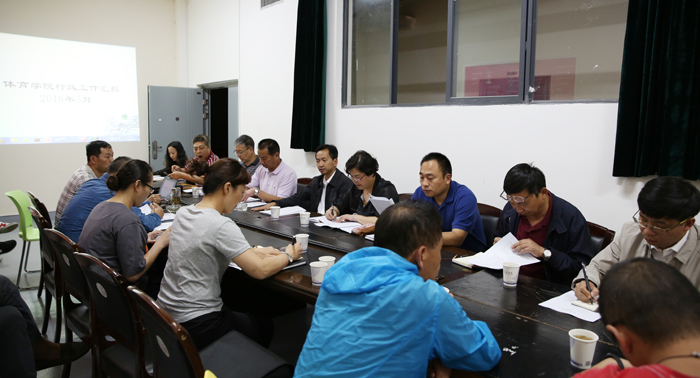 其他与会校领导在调研的基础上,就体育学院班子建设、教学、科研、专业建设、学生管理等工作提出指导性意见和建议。