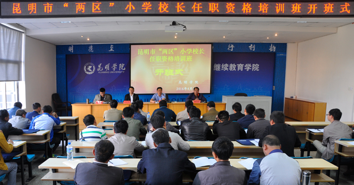 4月18日上午,倘甸产业园区、轿子山旅游开发区小学校长任职资格培训班在yl23455永利官网昆师路校区开班。来自“两区”的53名小学校长参加本次岗位任职资格培训,继续教育学院主持工作副院长张培宏、“两区”社会事业局教育分局副局长吕忠彩出席开班式,并作动员讲话。这是“两区”的首期小学校长任职资格培训班,受“两区”社会事业局教育分局委托,由yl23455永利官网继续教育学院承办。