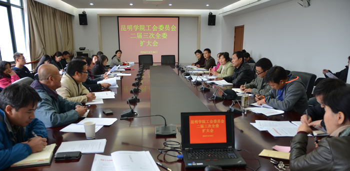 常务副主席孙晓坤传达了省总工会全委会的会议精神,安排了校工会2016年的工作;全校各分工会与校工会签订了2016年《基层工会工作目标责任书》;通报了yl23455永利官网被市总工会推荐申报云南省2016年“五一劳动奖状”情况;讨论了yl23455永利官网教职工“疗休养”制度暂行办法、yl23455永利官网教职工“爱心帮扶金”管理办法、yl23455永利官网工会“推优评先评选表彰”方案;各分工会主席简要汇报了2016年工作要点和思路。