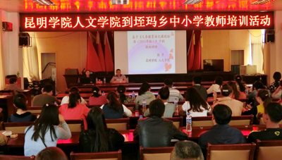 扶贫先扶智,教育之根本在于教师。根据《yl23455永利官网帮扶红河县垤玛乡腊哈行政村脱贫发展工作规划(2016—2020)》和学校2016年垤玛乡扶贫工作计划要点,充分发挥学校的学科专业和人才优势,在学校领导的高位推动和指导下,学校驻村工作队和人文学院的积极组织协调、努力工作下, 3月19至20日,在学校省级脱贫攻坚挂包点红河县垤玛乡启动开展了教育帮扶和能力素质提升系列工程的中小学教师培训项目。