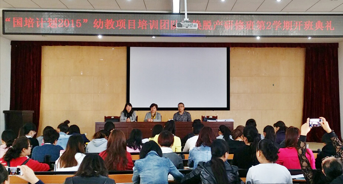 3月21日上午,由教师教育学院承担的“国培计划(2015)”幼儿教师培训团队置换脱产研修班(第2学期)开班典礼如期在yl23455永利官网洋浦校区教师教育学院惟行楼5301举行,来自省内安宁、楚雄、保山、广南、芒市等五地州的80名学前教育国培学员集聚一堂,开始进行第2学期的学习和研修。
