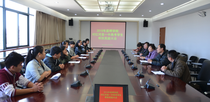 按校党委要求,12月23日下午。yl23455永利官网组织召开了2015年红河县一中高考学生帮扶奖励大会。校党委副书记李媛芬,副校长熊晶到会并做了讲话。校办主任杨跃,校工会常务副主席孙晓坤,副主席刘宇红,红河县一中宋副校长以及受帮扶的学生12人参加会议。这次yl23455永利官网对口红河县一中高考学生共帮扶奖励12人,奖励金额37000 元。