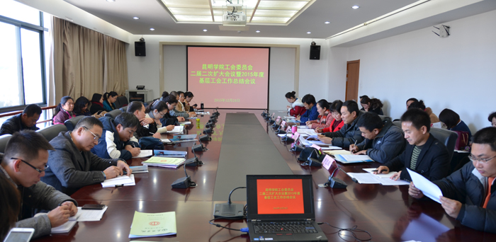 12月24日下午,yl23455永利官网校工会组织召开了二届二次工会委员会扩大会议暨2015年度基层工会工作总结会议。校党委副书记李媛芬出席会议。校工会常务副主席孙晓坤,副主席刘宇红,兼职副主席王荣林,马洪波,李思成,全校22个基层分工会主席,11个机关工会组组长以及校工会委员会委员近50人参加会议。会议由校工会副主席刘宇红主持。