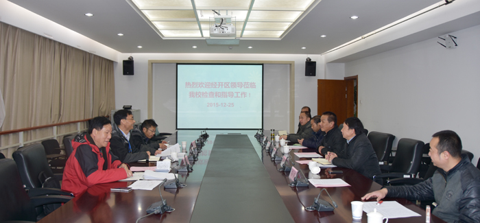 按照经开区对驻区单位开展2015年度安全生产工作综合督查考核的通知要求,12月25日上午,经开区安监局副局长李旭武一行3人组成的考核组对我校2015年安全生产工作进行督查考核。学校副校长李翔、保卫处处长方永昆、后勤集团党总支书记杨平、资产与实验室管理处副处长何松林、保卫处副处长孙丽及相关人员参加考核会。