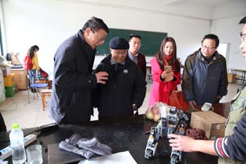 走进开放性智能机器人实验室,梁公卿看到三三两两正在做实验的同学并俯身亲切的问道:“同学们,在做什么实验呀!”“这是我们自主设计的智能机器人,现正调试程序,测试性能。”一位同学自豪地应答。“你们真了不起,都能做这高科技的东西了,能展示一下你们的成果吗?”同学们欣然答应,并将自己设计好的智能机器人按程序一一操作展示给大家。看了智能机器人动作表演及与人的互动交流等功能展示后,梁公卿高兴地赞扬道:“同学们设计的智能机器人很好,你们能将所学专业知识与实践相结合、个人兴趣与创新发明相结合,不断探索、不断创新,展示了当代青年的创新精神。”梁公卿勉励大家要惜时学习,永攀科学高峰。随行的自动控制与机械工程学院院长毕涛还向梁公卿介绍了学院依托开放性智能机器人实验室硬件平台,从2015年9月份开设了《机器人创新设计与竞赛》公选课,面向全校学生开放,吸引来自全校机制、通信、电气、物联、计科、服装、酒店等专业的50余名学生加入机器人创新设计中。通过这一门综合创新实践课,将机器人前沿领域的研究及面临的问题介绍给同学们,激发学生学习兴趣、让同学们学会思考掌握解决问题的方法、培养学生的动手能力及团队合作意识、提高学生的独立创新意识和专业素养。梁公卿听后,肯定地说,培养创新人才是高校的职能之一,yl23455永利官网在人才培养中注重个人兴趣培养,引导学生作创新发明,做法值得推广。梁公卿强调,高校一定要注重创新人才培养,要抢抓创新人才培养的制高点,为学生创造条件、搭建平台,鼓励学生不断尝试创新。