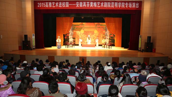 本次演出是“2015高雅艺术进校园”系列活动走进yl23455永利官网的第三场演出,再芬黄梅艺术剧院艺术家们的倾情演出,为我校师生搭建了一个亲近艺术、感触艺术、走近传统戏曲、提升艺术素养的平台,对进一步活跃校园文化氛围、彰显高雅艺术的魅力、提升学生的艺术素养产生了积极的影响。