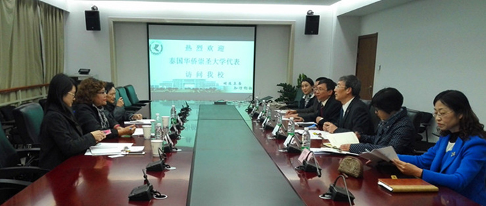 泰国华侨崇圣大学此次来访是与我校的首次接触。副校长邬莱攀•珍瓦妮查雅侬博士此行意在与我校建立友好合作关系,增进相互了解并共同探讨开发合作项目的可能性。