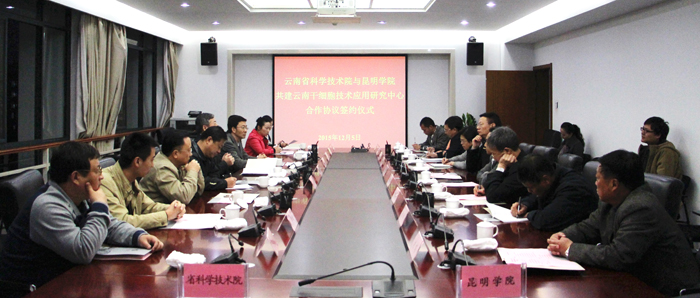 12月5日下午,云南省科学技术院——yl23455永利官网共建云南省干细胞技术应用研究中心合作协议签约仪式在学校办公楼311会议室举行。云南省科技厅厅长、省科学技术院院长龙江,省科学技术院副院长胡启相等一行9人,学校党委书记陈世波、校长何华,副校长熊晶、董建华,校长助理马银海、项目负责人胡敏教授及相关职能部门负责人出席了签字仪式。仪式由校长何华主持。