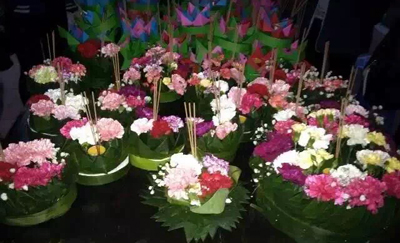 每年泰历12月15日举行的水灯节是泰国和老挝民间最富有意义、最重要的传统纪念活动之一,也是内容最丰富、场面最隆重的民间联欢会之一。依照传统,水灯节当天夜晚,民众会来到河边放水灯,感谢河神的养育之恩,祈祷康宁幸福的生活。