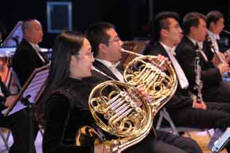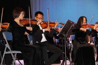 昆明聂耳交响乐团的艺术家们为我校师生演奏了关峡的《节日序曲》、那少承的《滇池圆舞曲》、鲍元恺的《紫竹调》《猜调》、杜鸣心的芭蕾舞剧《红色娘子军》组曲之《军歌》《操练》《快乐的女战上》《万泉河水》、丁晓里的《中国心》、柴可夫斯基的芭蕾舞剧《天鹅湖》组曲之《场景》《四小天鹅》《拿波里舞曲》、奥芬•巴赫的《康康舞曲》、约翰•施特劳斯的《拨弦波尔卡》《铁匠波尔卡》《拉德斯基进行曲》。