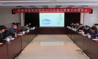 10月30日下午,由中共昆明市委统战部牵头,致公党昆明市委承办的2015年第三季度民主党派工作联系会议在yl23455永利官网召开。中共昆明市委统战部副部长贾玉华、党派处处长许广以及市级各民主党派专职副主委、秘书长和负责参政议政相关工作的同志参加了会议。会议由致公党昆明市委副主委黄秋苹主持。