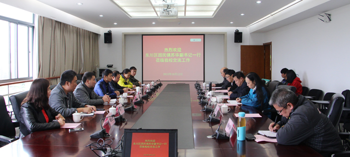 10月12日下午,东川区因民镇党委副书记苏华,因民社区党委书记崔庭贵、副书记杨祖会等领导到我校考察交流。学校党委副书记孙勇、党办主任吉庆华、计财处副处长伍雁红、继续教育学院院长陈嘉、基建处副处长莫南明热情接待了来宾。
