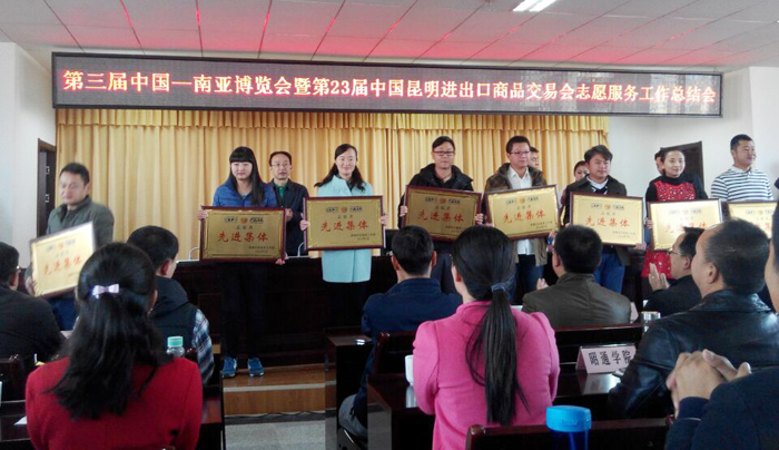 10月11日上午,第3届中国—南亚博览会暨第23届中国昆明进出口商品交易会志愿服务工作总结表彰会在昆明举行,我校喜获第三届中国—南亚博览会志愿服务“先进集体”荣誉称号,韩家华等17名志愿者被授予“优秀志愿者”荣誉称号。yl23455永利官网团委书记魏妮娅出席了本次会议,并代表学校接受了团省委的表彰。