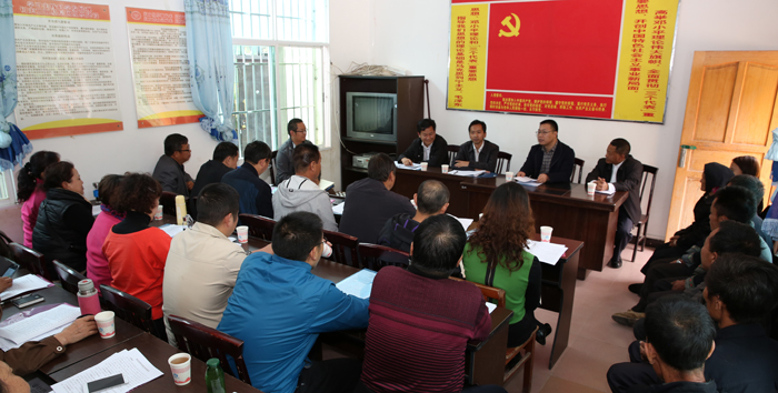 来到垤玛乡腊哈村委会,何华一行与县、乡、村干部、群众及我校驻村新农村建设指导员座谈,了解垤玛乡、腊哈村基本情况,掌握扶贫实情。红河县副县长宋文辉、垤马乡党委书记朱福禛、腊哈村委会党总支书记朱松沙分别介绍了垤玛乡、腊哈村委地理环境、气候条件、经济社会发展、党组织建设情况,谈了发展思路、打算及存在的问题、困难。垤玛乡地处红河、玉溪、普洱三州市交界处,世居98%的哈尼族和汉族,立体气候适宜种植茶叶、杉木、草果、核桃等经济作物,人均纯收入4500元,属典型的“边疆、山区、民族、贫困”为一体的扶贫开发乡。腊哈村委有8个自然村,村境世居哈尼族,共有262户1193人,人均纯收入3230元,现建档立卡未脱贫有124户515人。