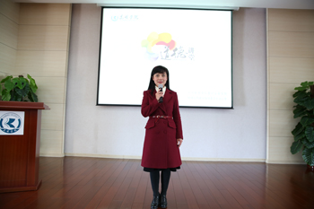 “人生就像一篇文章,其价值不在于篇幅的长短,而在于内容是否充实。而生活中有颗爱心的人,才是真正幸福的人,真正无私的人。当爱成为一种习惯,就不会刻意的去在乎生活中的得失,而闲暇时细数得失,却发现收获了很多从来不曾想过的东西,人生,因为很多的举手之劳而变得更加充实和圆满,立足农村的我,相信能用自己的行动来更好的诠释志愿者的含义,活出平凡但不平庸的人生。”陈闰茹与师生分享了她从事公益活动12年来的幸福与快乐,道出了她热衷公益活动的感悟与人生价值线条。