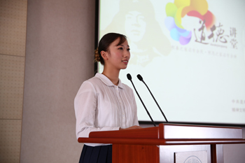 “爱,如今成了学姐的一种习惯。这爱,源于她父母的教育和学校多年的培养,使她懂得了人性的良善、人间的大爱。”“学姐给我们树了榜样、立起了标杆,让我们心存一颗仁爱之心,胸怀无私与大爱,在平素以学姐为榜样,努力学习,严以修身、争做好人,做一个幸福、快乐的人,把爱传递给身边的人……”2014级在校学生张子昕讲述了她眼中的学姐陈闰茹,道出了在校学生对好人的追求,表达了传递爱的决心。