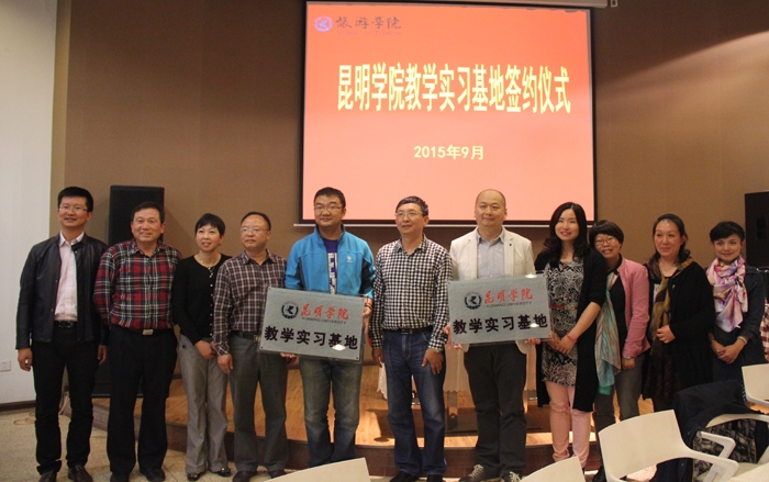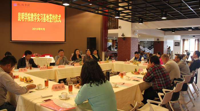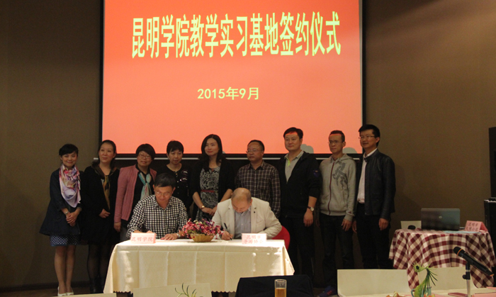 9月17日,yl23455永利官网与昆明市大观公园、昆明市导游协会在旅游学院酒水实验室举行教学实习基地签约仪式。来自昆明市大观公园的谢长勇书记、徐昊天工会主席一行;昆明市导游协会李伟秘书长一行到会参加了签约仪式并座谈。校长助理马银海、教务处副处长常进荣、旅游学院党政领导等参加。仪式由旅游学院院长田芙蓉主持,旅游学院导游教研室全体教师列席。