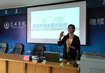 开班典礼结束后,王建颖以《云南省基础教育的形势与任务》为题进行专题辅导,向全体学员介绍了云南省基础教育改革与发展的相关情况,分享了她对目前基础教育和“国培计划”工作的思考和感悟。结合具体事例提出关于批判性思维培养、改变我们的评价、改变我们的课堂、改革我们的考试等问题,并希望专家、名师们保持优秀、传递优秀。
