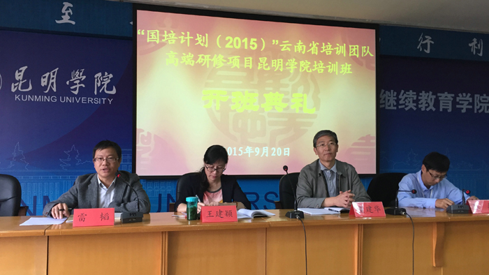 9月20日上午,“国培计划(2015)”云南省培训团队高端研修项目yl23455永利官网培训班开班典礼在昆师路校区继续教育学院隆重举行。云南省教育厅副厅长王建颖,yl23455永利官网副校长董建华,云南省教育厅师范教育处处长雷韬等领导出席,近200名学员参加了开班。典礼由继续教育学院院长陈嘉主持。